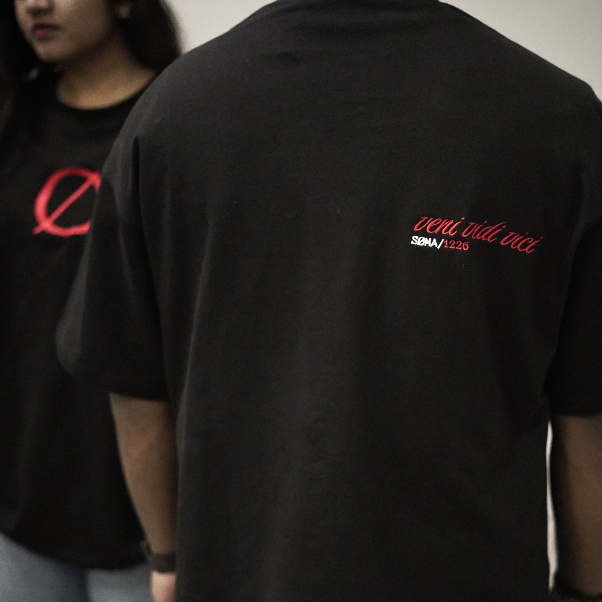 Cut from 240 GSM premium cotton with RED embroidery on deep washed black, it stands as a timeless artifact of power and restraint.